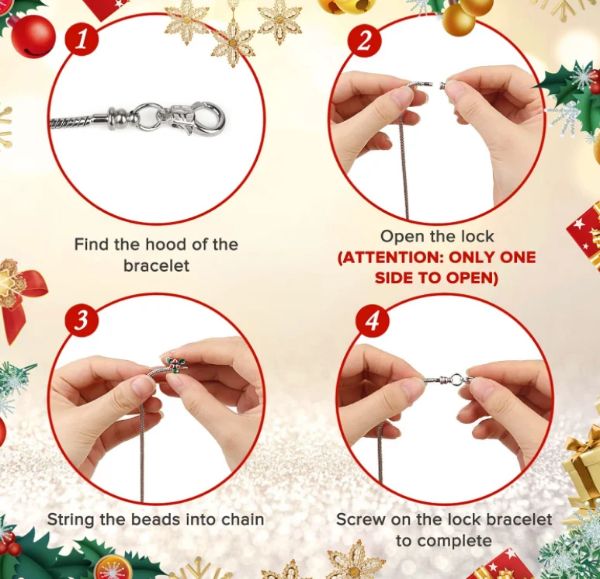 Vynikajúca možnosť pre dievčatá, ktoré si rady vyrábajú vlastné šperky. Tento náramok slúži ako pútavá remeselná aktivita počas večierkov, ktorá umožňuje dievčatám kombinovať a spájať korálky a závesky a prispôsobiť si tak svoj jedinečný módny náramok na Vianoce.