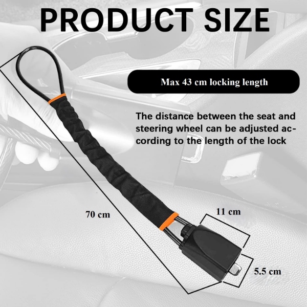 🔒 Zabraňuje používaniu volantu aj bezpečnostného pásu pre dvojnásobnú ochranu