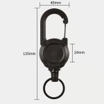 Vnútorný pružinový rohatkový mechanizmus zakaždým hladko navinie oceľové lanko späť – žiadne ručné navíjanie, žiadne zamotávanie, žiadne visiace lanko. Pružinová karabína sa za menej ako 3 sekundy zacvakne na akékoľvek pútko na opasok, popruh tašky alebo okraj vrecka na nohaviciach a drží bez toho, aby sa pri pohybe odopla.