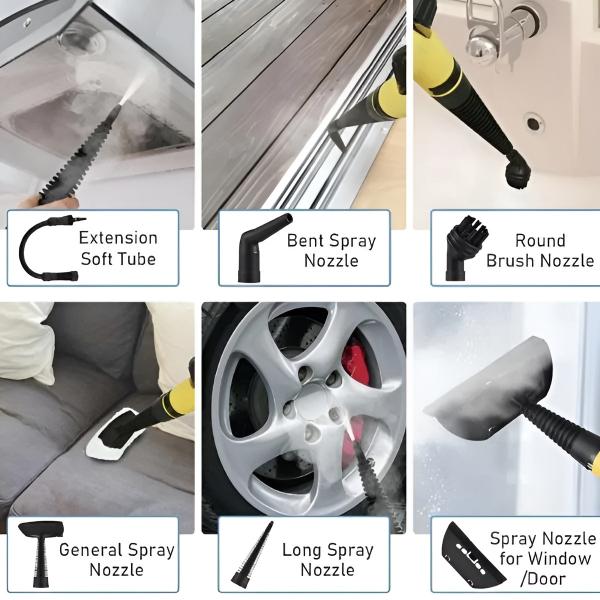 Obsahuje kefy, trysky a podložky na čistenie podláh, škárovacích hmôt, okien a ďalších.