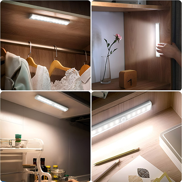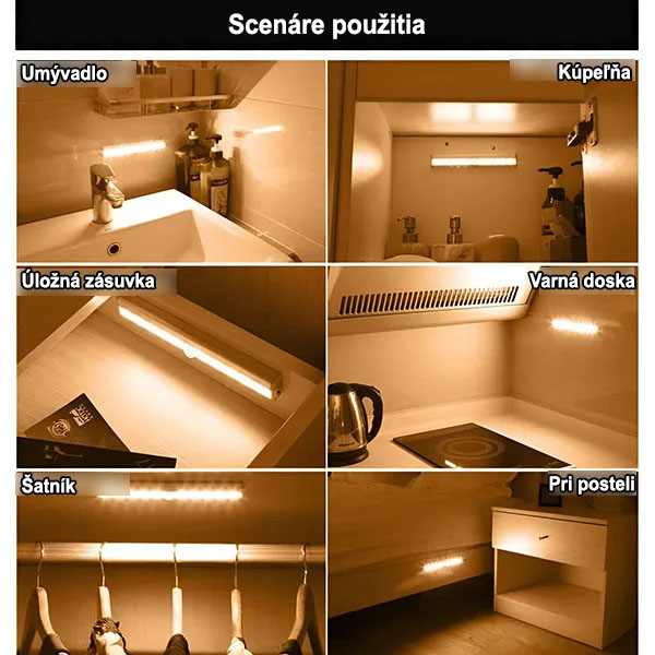 Vložte 4 AAA batérie a potom pripevnite pomocou priloženého magnetického prúžku alebo lepiacej pásky – žiadne náradie, žiadne vŕtanie, žiadne poškodenie steny. Umiestnite ho do skrine, pod kuchynskú linku alebo vedľa postele a funguje okamžite.
